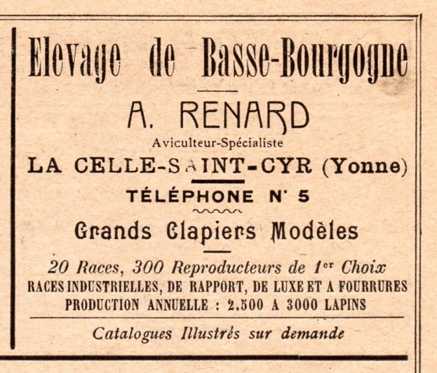 Cependant, comme l'irrégularité de sa couleur le faisait écarter de certains clapiers d'amateurs, les éleveurs entreprirent et réussirent la tâche de le doter d'une fourrure et d'une teinte de qualité. Parmi ces éleveurs, il faut citer M.RENARD de la Celle Saint-Cyr à qui revient le mérite d'avoir fait d'un peuplement de terroir une race bien caractérisée : le Fauve de Bourgogne.