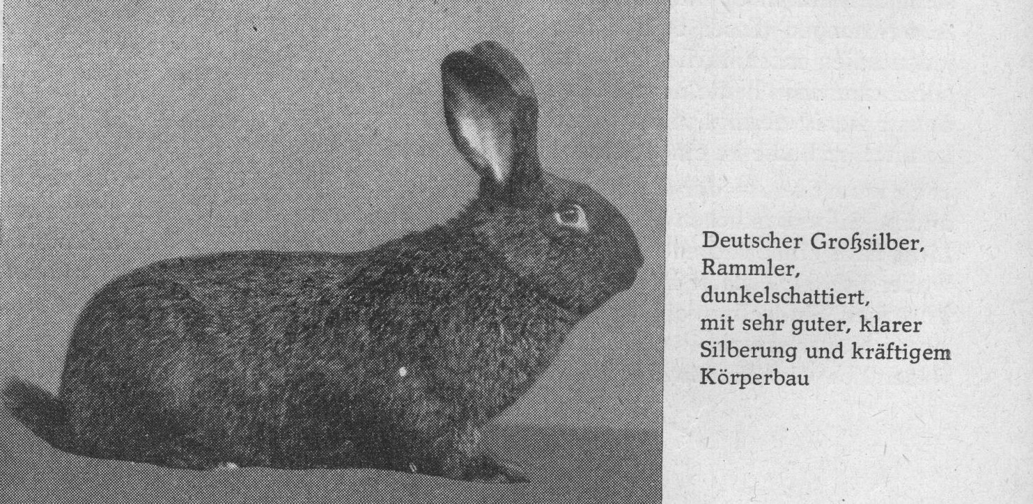 Le pelage argenté était également très apprécié, notamment celui des Grands Argentés de Nagel, qui présentaient une fourrure très appréciée, mi-longue et dense. Dans la mesure où ces deux races différentes ont été élevées entre elles de manière pure, elles constituaient deux races de Grands Argentés totalement distinctes. Mais on ne s'est pas contenté de la reproduction pure, et de nombreux éleveurs les ont également croisés avec les Grands Argentés clairs (Argentés Français) importés. Il en a résulté un mélange inextricable de Grands Argentés, de sorte qu'il était presque impossible de distinguer les deux races, les Grands Argentés clairs et les Grands Argentés Allemands.